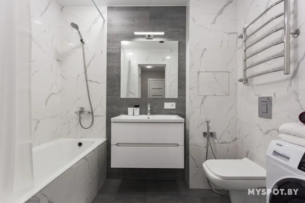 В квартире есть все необходимое для комфортного проживания: современная техника (включая кондиционер и посудомойку), хорошая мебель, ортопедический матрас, посуда для приготовления еды, столовый набор, бокалы и нужные мелочи. В ванной махровые полотенца и средства гигиены, есть бойлер и гигиенический душ.