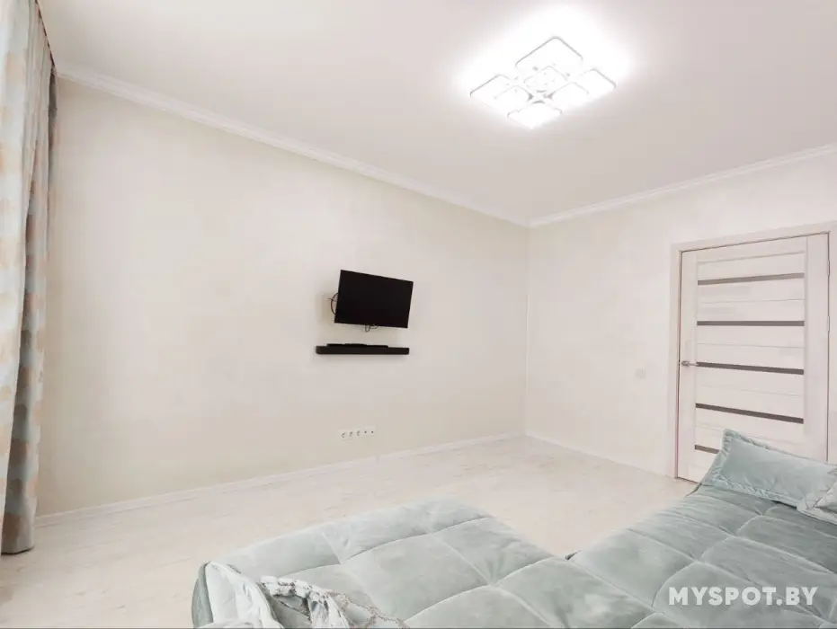 Новая квартира в новостройке. Хорошо подойдёт для одного гостя или пары. Находиться в спальном микрорайоне Гомеля. Удобный подъезд со стороны Минска и Могилёва. До центра города 10мин на авто. Также хорошее транспортное сообщение с другими частями города. Рядом расположены: стадион, линейка магазинов, несколько ресторанов и кафе.